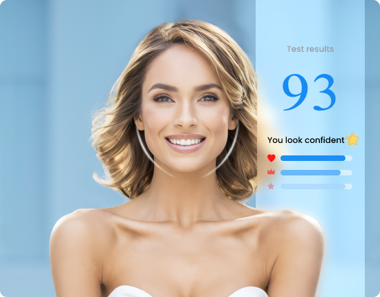 Sou bonito(a)? Experimente o Vidqu Teste de Beleza online grátis para descobrir a atratividade do seu rosto. Envie uma foto e receba facilmente sua pontuação de beleza facial agora.